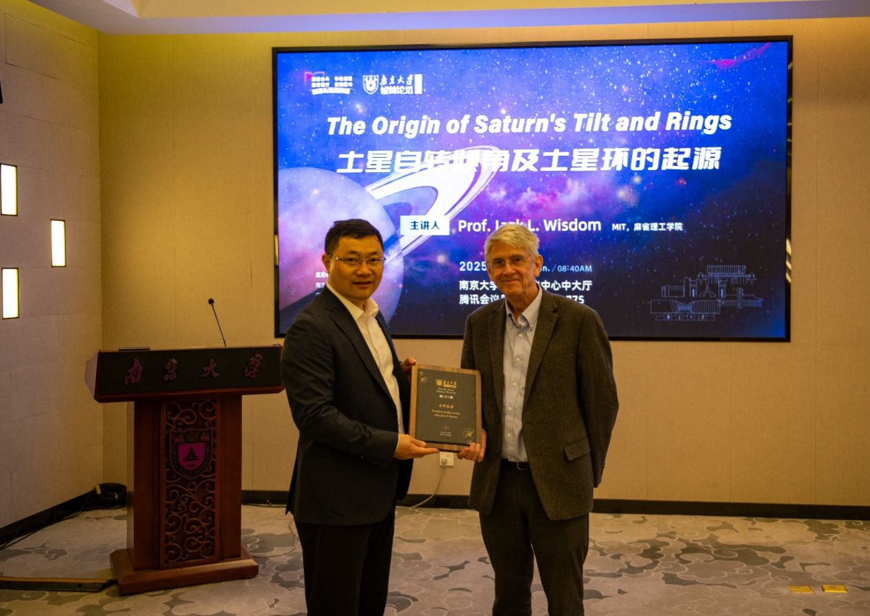 On May 19th, the 22nd Academic Lecture of Xianlin Forum was held. Jack Wisdom, Professor of Massachusetts Institute of Technology, Member of the National Academy of Sciences (NAS) and the American Academy of Arts and Sciences (AAAS)United States, gave an academic lecture titled "Origin of Saturn's Tilt and Young Rings". Professor Zheng Hairong, Vice President of Nanjing University, and Academician of the Chinese Academy of Sciences (CAS), attended the forum.