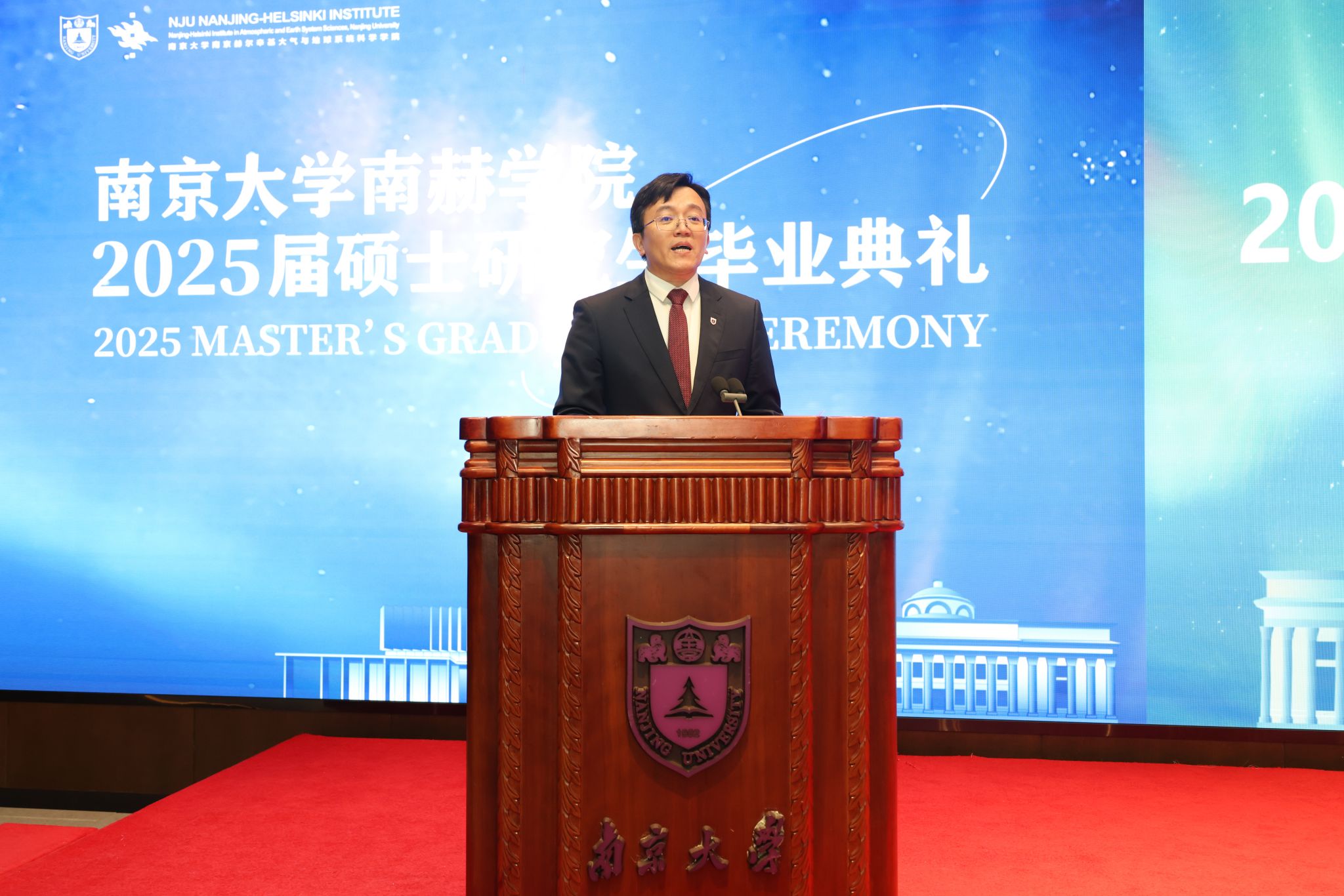 On the morning of June 10, 2025 Master's Graduation Ceremony of Nanjing University's Nanjing-Helsinki Institute in Atmospheric and Earth System Sciences (Nanjing-Helsinki Institute) was held in the Zijin Hall of the International Conference Center on Xianlin Campus. Attending the ceremony were Sari Lindblom, President of the University of Helsinki; Tan Zhemin, President of Nanjing University and Academician of the Chinese Academy of Sciences (CAS); Olli Suominen, Education and Science Counsellor at the Finland Embassy in Beijing; and Fu Congbin, Academician of the CAS, Foreign Member of the Finnish Academy of Science and Letters, and Professor from School of Atmospheric Sciences of Nanjing University.