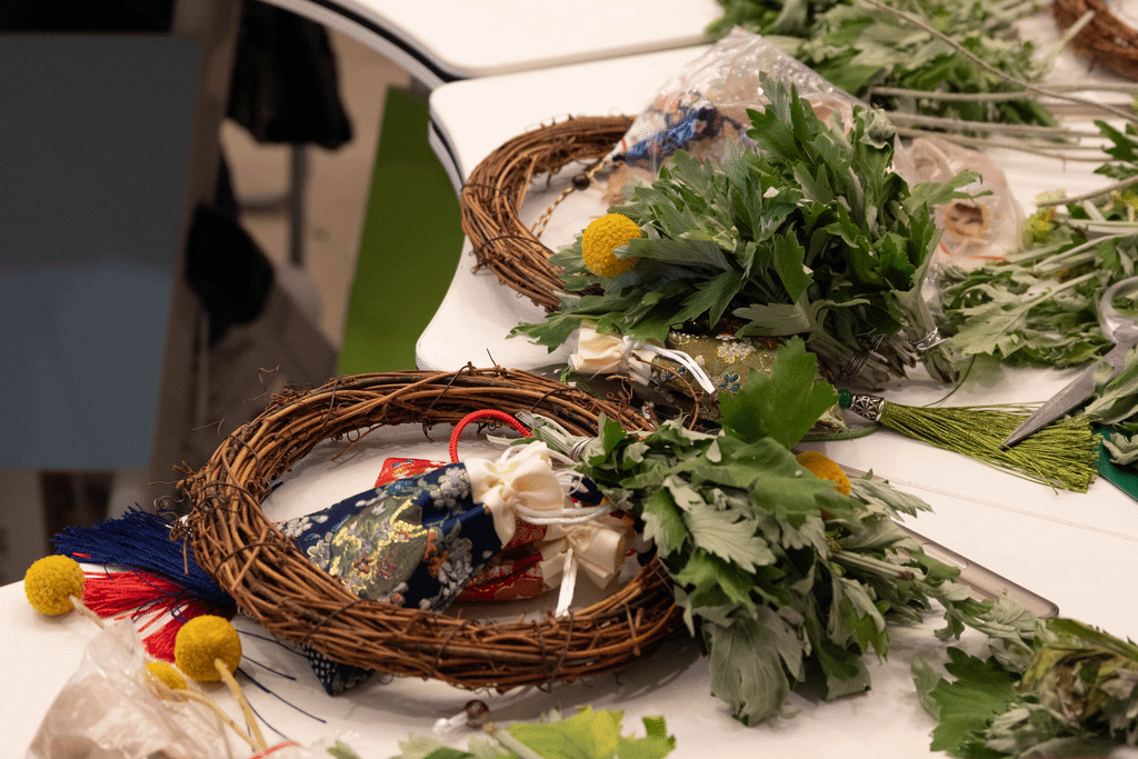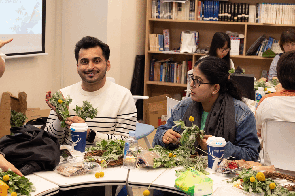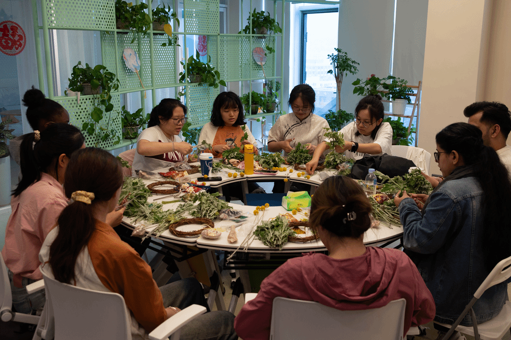 The mindful process of crafting and personalizing these traditional Chinese handicrafts not only offered a calming break from academic pressures, but drew students deeper into the heritage of the Dragon Boat Festival. In selecting and weaving herbs into sachets and wreaths, participants also experienced the integration of Nature and Humanity. These handicrafts are far more than mere visual decorations; they serve as living emblems of balance, reminding students to honor the natural world that sustains us all.