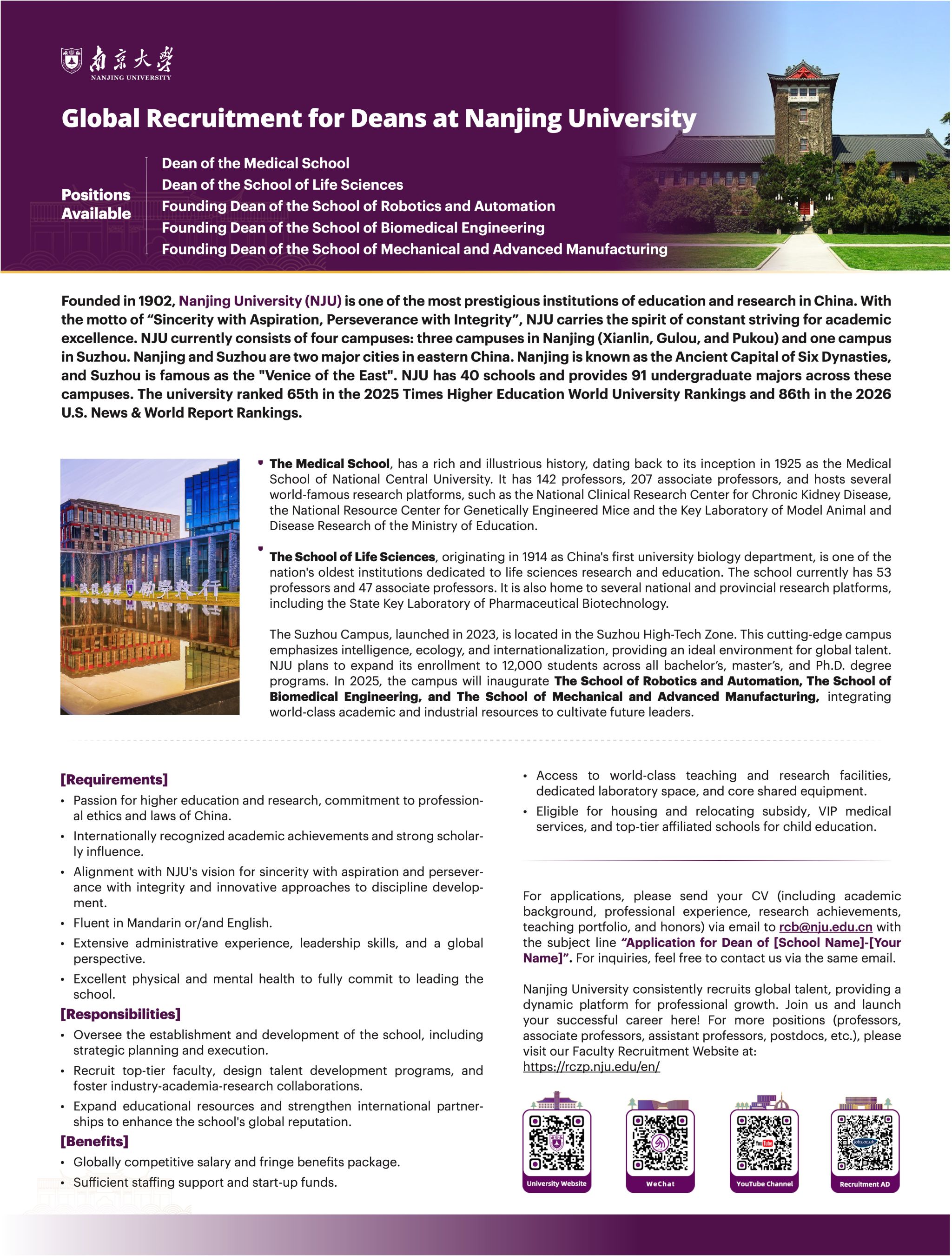 Global recruitment for Deans at Nanjing University