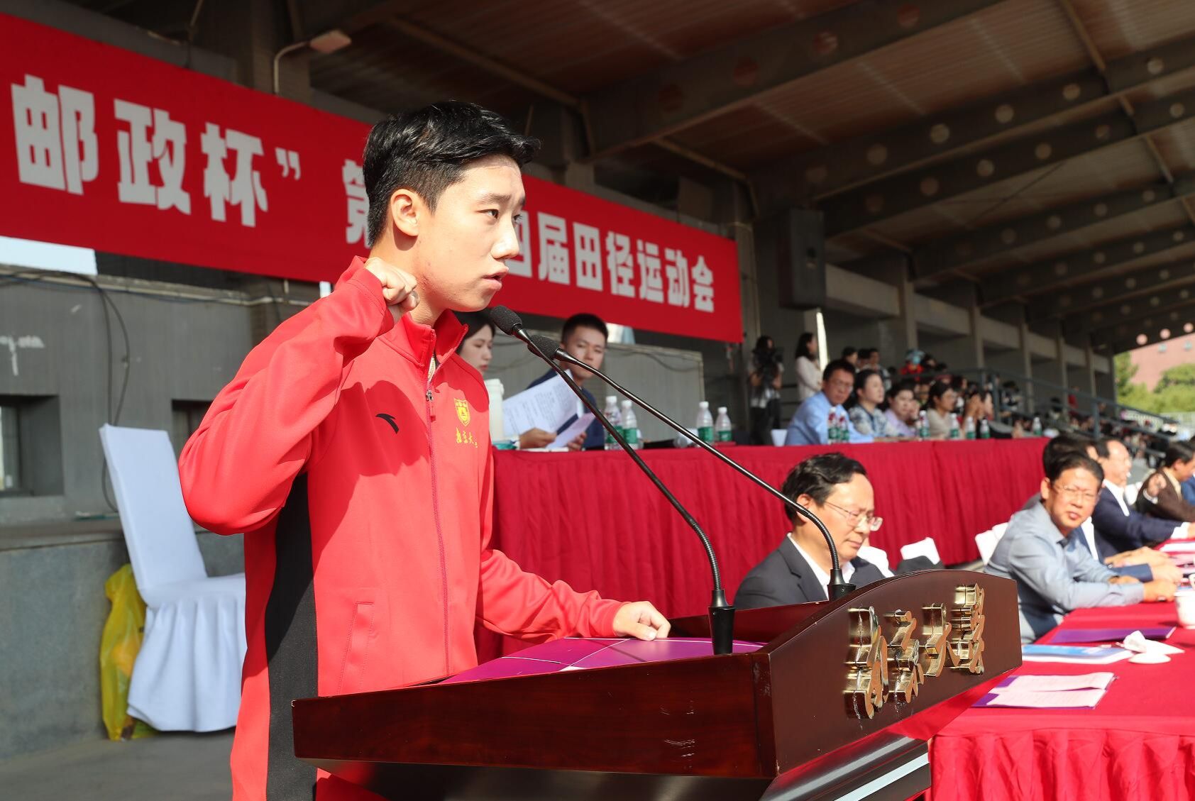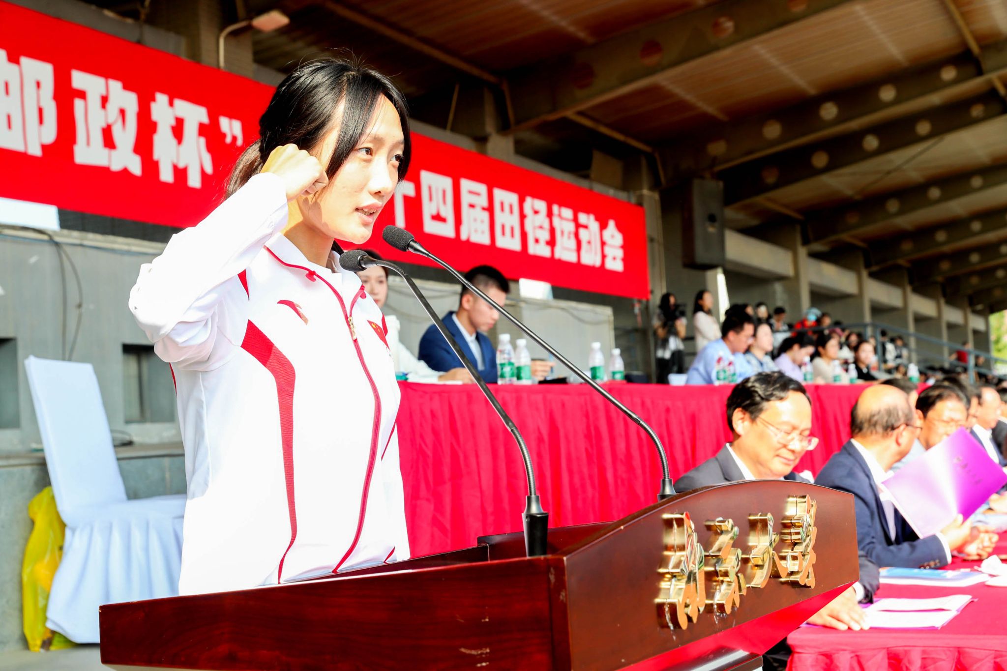 新闻传播学院本科生李玉婷代表全体运动员宣誓;体育部教师谢云龙代表全体裁判员宣誓。
