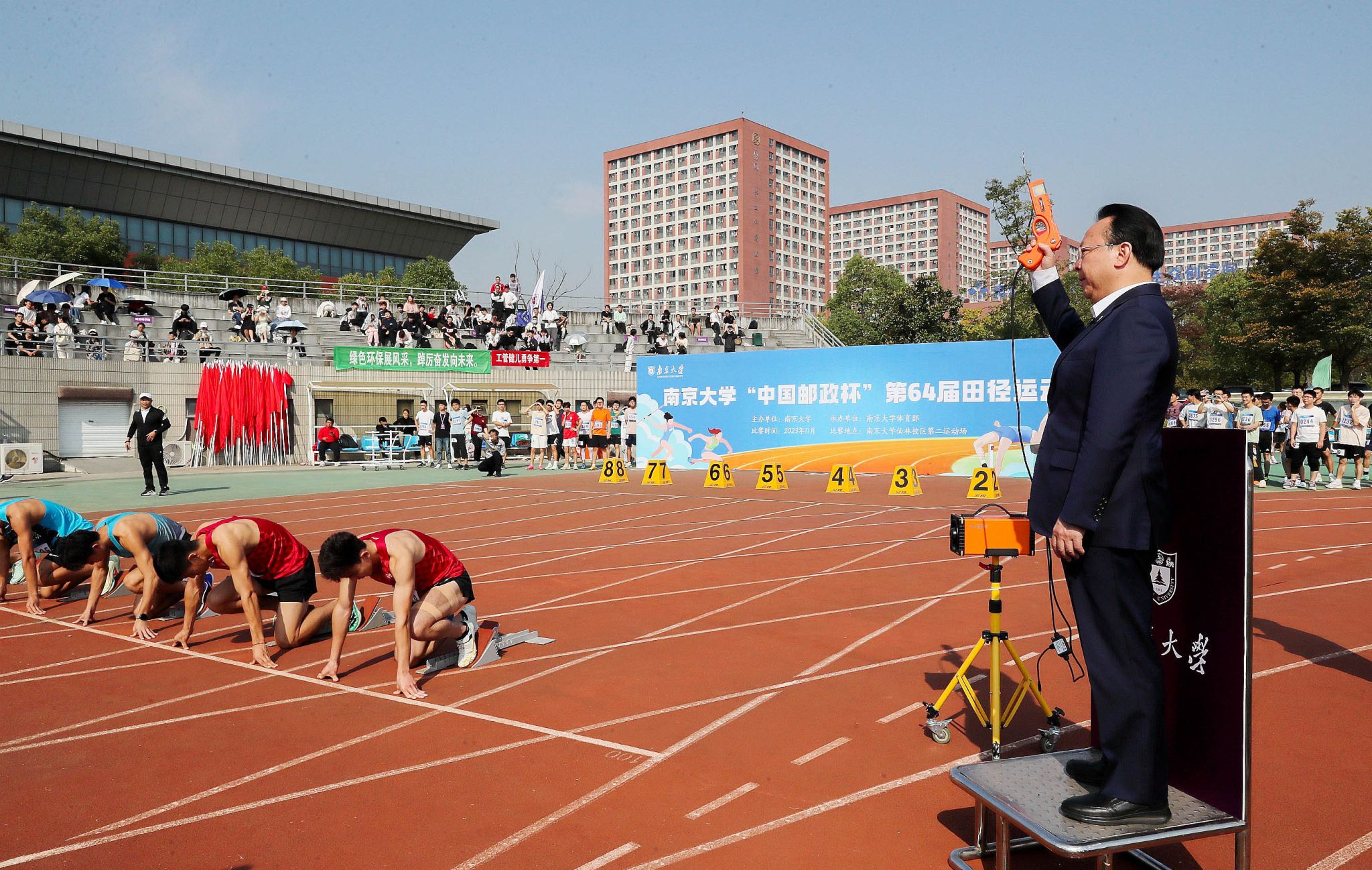 谭铁牛宣布凯发k8官网第64届“中国邮政杯”田径运动会开幕,并为本届校运会鸣枪发令。