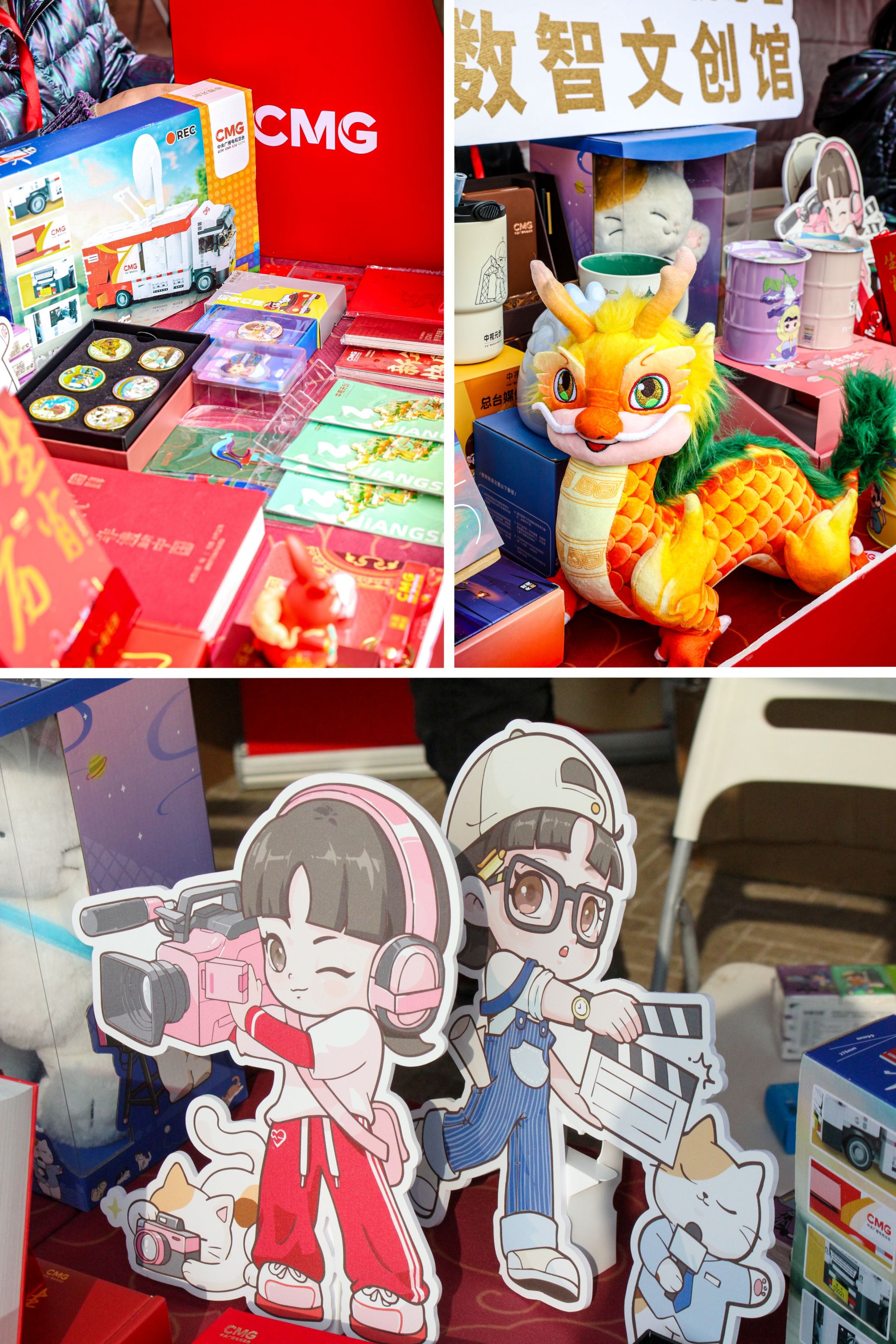 在520广场,“总台IP市集”一排排琳琅满目的摊位吸引了众多师生驻足流连。在《中国诗词大会》展台,“小诗人”们络绎不绝,成功背诵古诗即可获得精美贴纸;大朋友、小朋友们与CMG观察的吉祥物小象“采采”“鼓鼓”亲密互动,欢声笑语不断;蛇年春节联欢晚会联名围巾等各类文创精品展现了创意的力量。