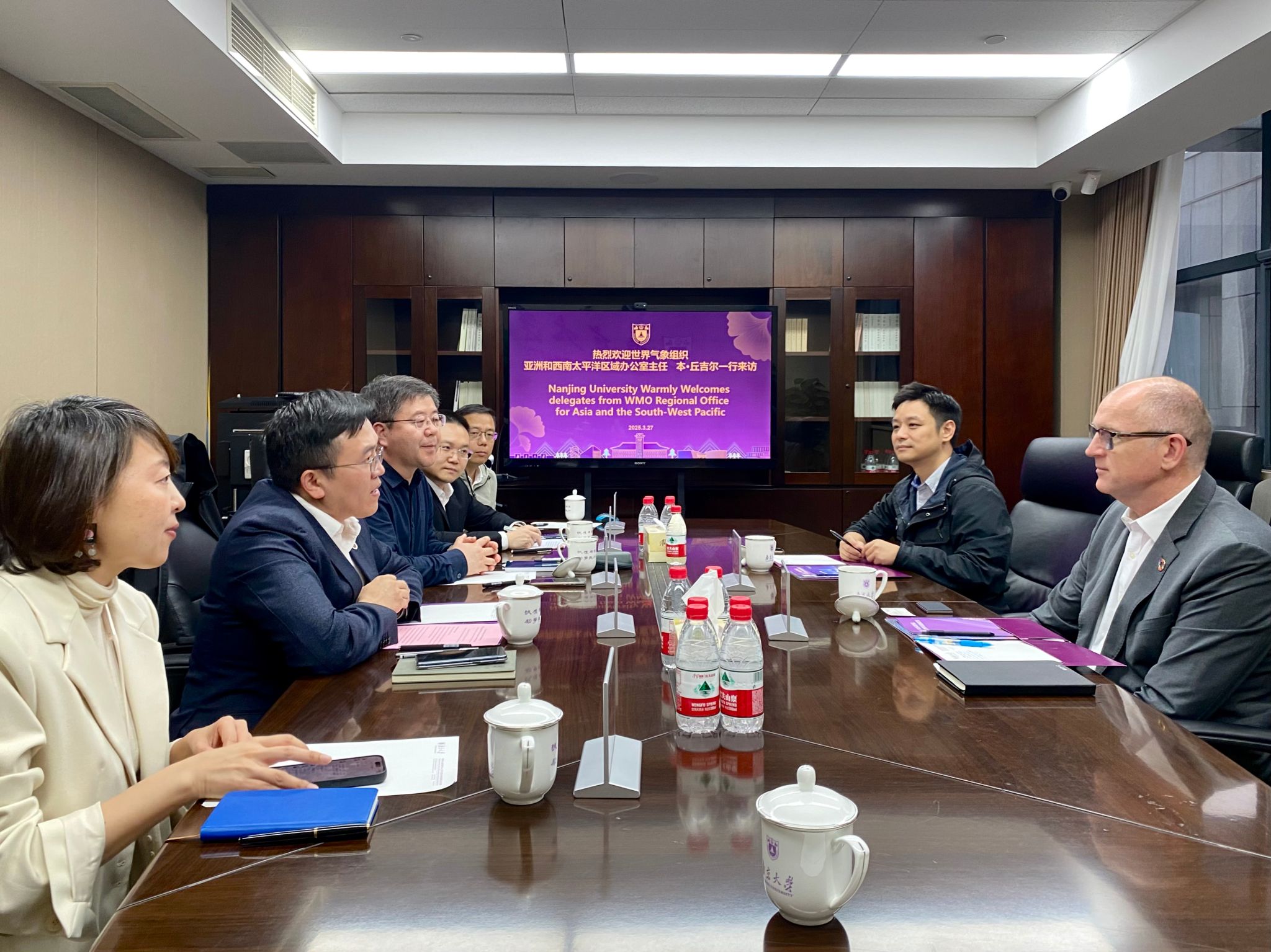 3月27日,世界气象组织(WMO)亚洲和西南太平洋区域办公室主任本杰明·丘吉尔(Benjamin Churchill)及区域负责人虞俊一行到访凯发k8官网。校长助理丁爱军在仙林校区会见了来宾,双方就深化合作进行交流。