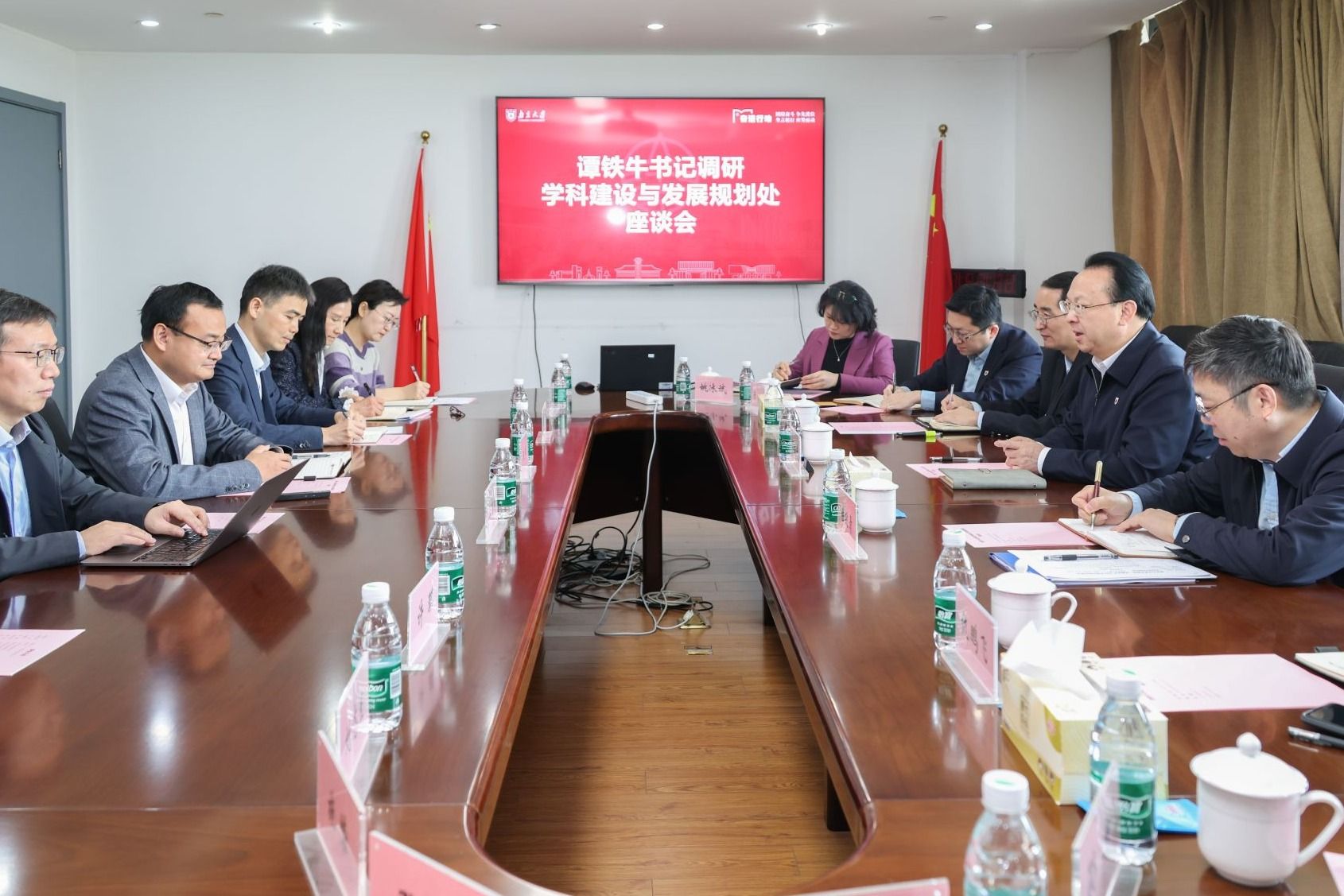 谭铁牛听取了学发处工作汇报并予以充分肯定,评价该部门“人不多,事不少,任务繁重,责任重大。”他指出,学发处的同志们在部门领导带领下,认真落实学校党委关于学科工作的部署,在苏州校区建设等任务中履职尽责,展现出新气象,发挥了新作用。