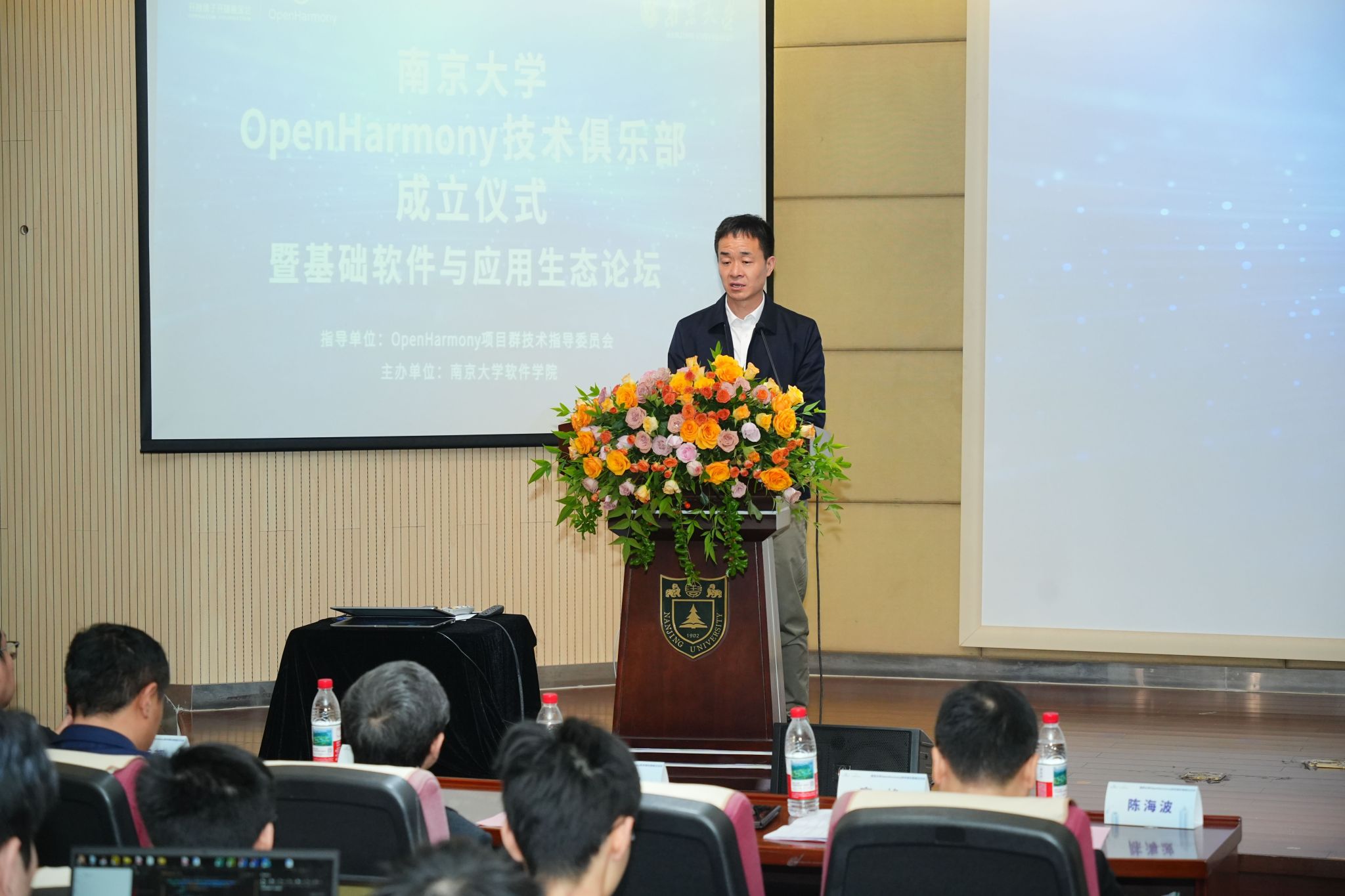 凯发k8官网计算机学院软件学院人工智能学院党委书记武港山在致辞中介绍了凯发k8官网软件学院的发展情况,以及凯发k8官网OpenHarmony技术俱乐部成立的重要意义。凯发k8官网软件学院院长助理、OpenHarmony技术俱乐部执行主任刘钦介绍俱乐部的建设思路及规划。