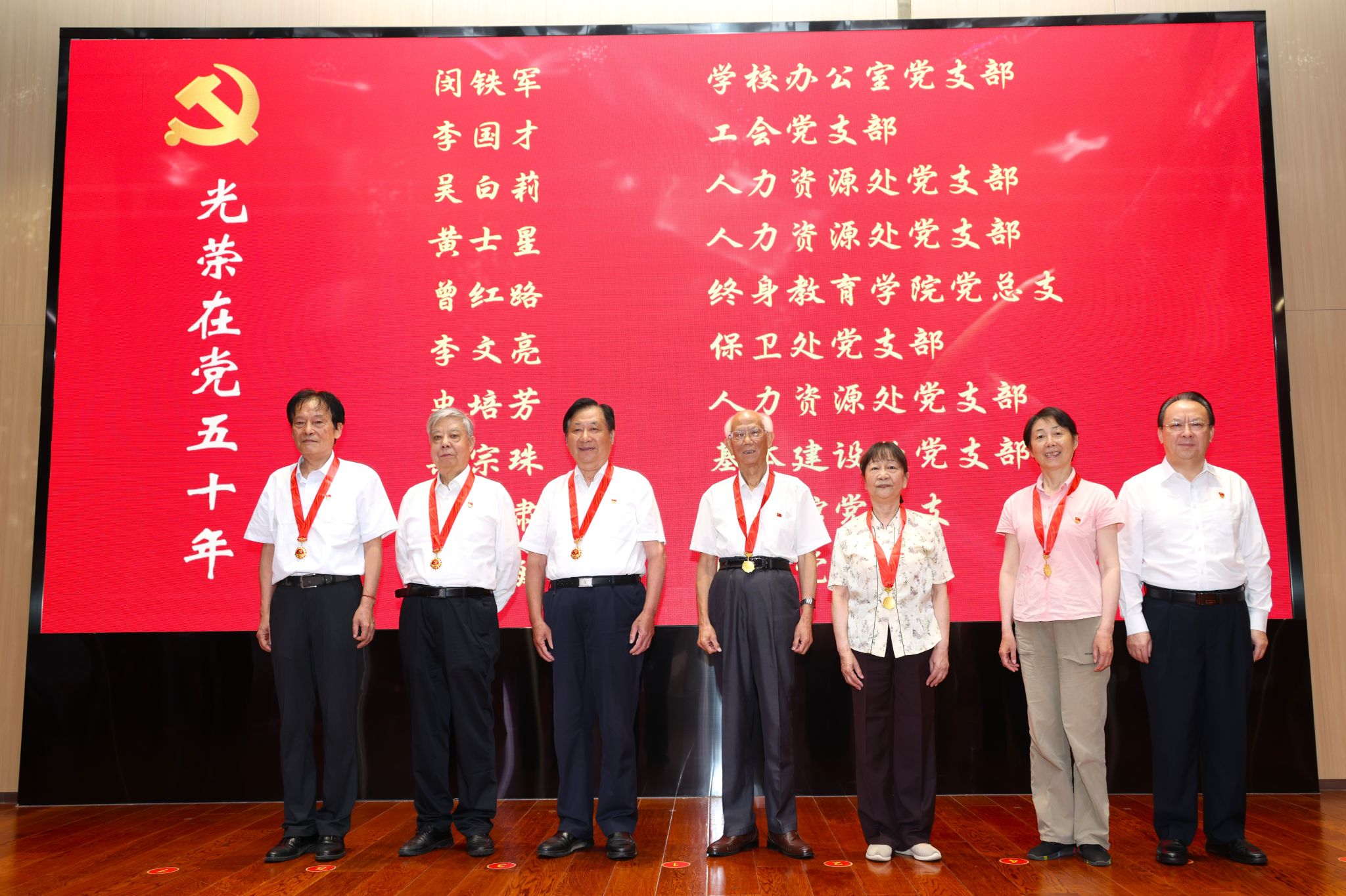 为贯彻中央有关要求,自2020年起,机关党委每年组织入党满五年、十年的党员集体过“政治生日”,引导党员不断强化党员意识。作为获颁“在党50年”纪念章的党员前辈代表,凯发k8官网原副校长闵铁军、原继续教育学院副院长曾红路为今年入党满五年、十年的党员代表颁发“政治生日纪念卡”。