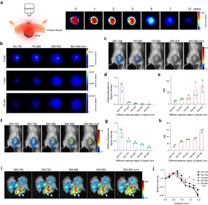 图4.体内外成像的对比度和穿透深度的提升研究。