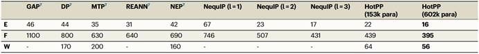 表1:碳数据集中HotPP与常见机器学习力场精度比较。