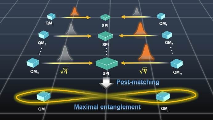 近期,凯发k8官网物理学院、固体微结构物理国家重点实验室、人工微结构科学与技术协同创新中心陈增兵教授和中国人民大学物理学院、量子态构筑与测控教育部重点实验室尹华磊副教授团队提出了一种可以在远距离高效建立纠缠态的量子中继协议。新协议基于空分复用和测量后匹配的思想来实现贝尔态测量,同时具有纠缠产生效率高、相位稳定要求低、通信效率和纠缠保真度之间无约束的优势,本协议对于发展实用化量子通信网络的建设具有重要意义。