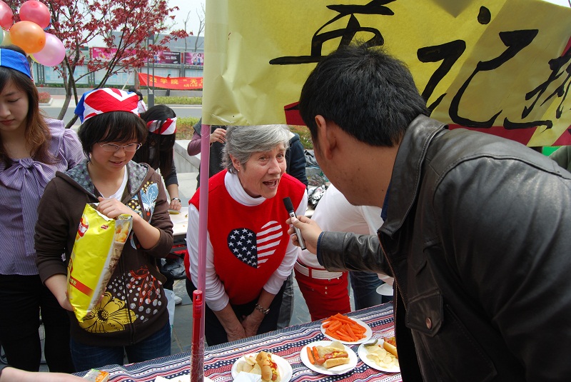 如果你还没闻到“英记热狗”的扑鼻香味,品尝到俄罗斯的布宁薄饼,或是西班牙果酒的香醇,那么你至少不会错过这场活力四射的劲舞,伴着欧美流行音乐的节拍,外院的几位舞蹈高手一下子就吸引了全场的眼球,赢得阵阵的掌声与喝彩。英文外教老师Becky也加入了这场大派对,大声向各处的同学们喊道“come here to have your lunch!”香喷喷的“英记热狗”就是在她的教学下新鲜出炉的,“Very interesting!”Becky还告诉记者她很喜欢凯发k8官网,更喜欢凯发的这群学生。