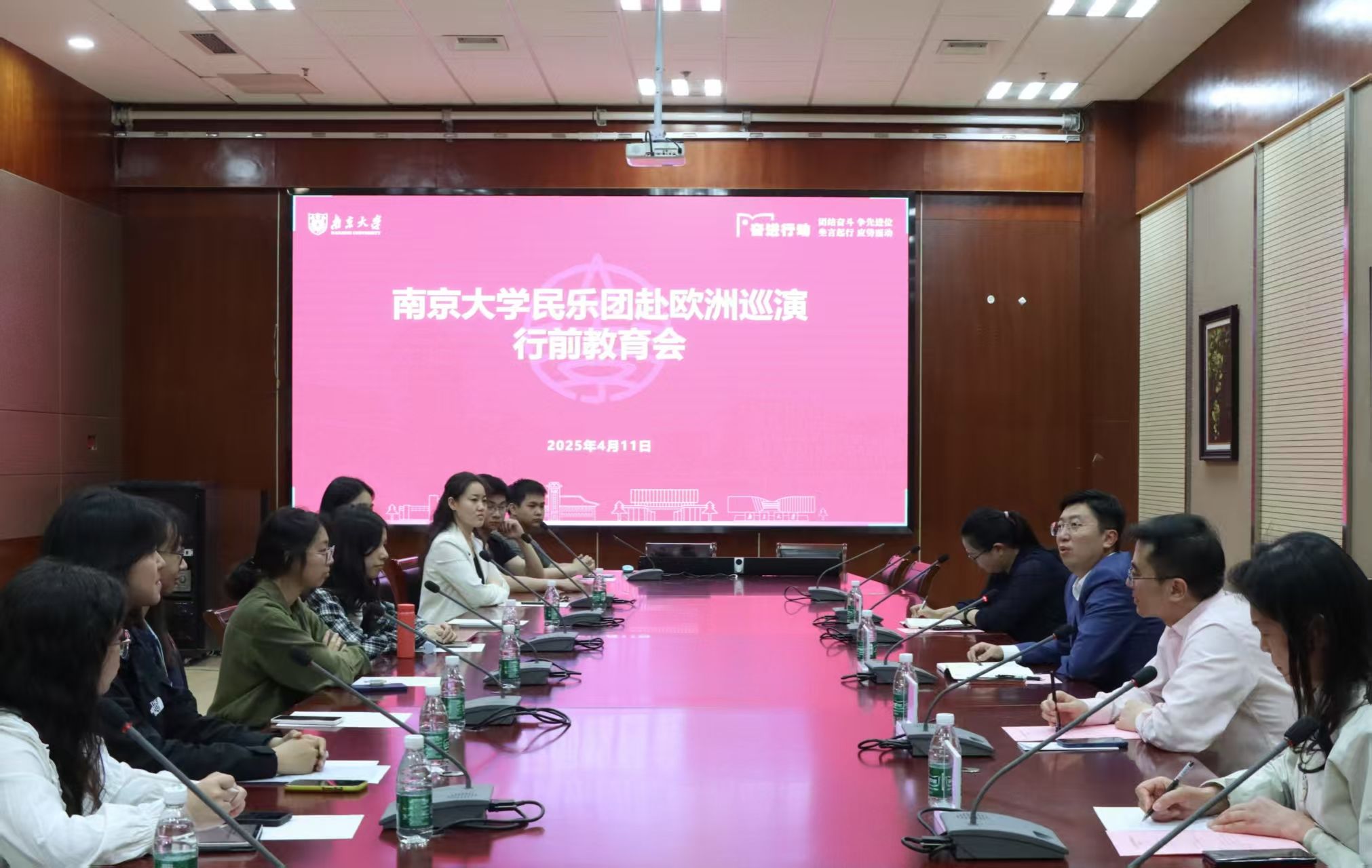 本次凯发k8官网民族乐团赴欧洲巡演得到了学校领导和各有关部门的大力支持。出访前夕,校团委举行了行前教育会,校团委书记曹晨出席活动并讲话,海外教育学院副院长、孔子学院办公室副主任程序为全体出访成员做行前教育,校团委副书记郭明姬主持会议,民族乐团常任指挥张静波教授和全体出访学生参加了会议。