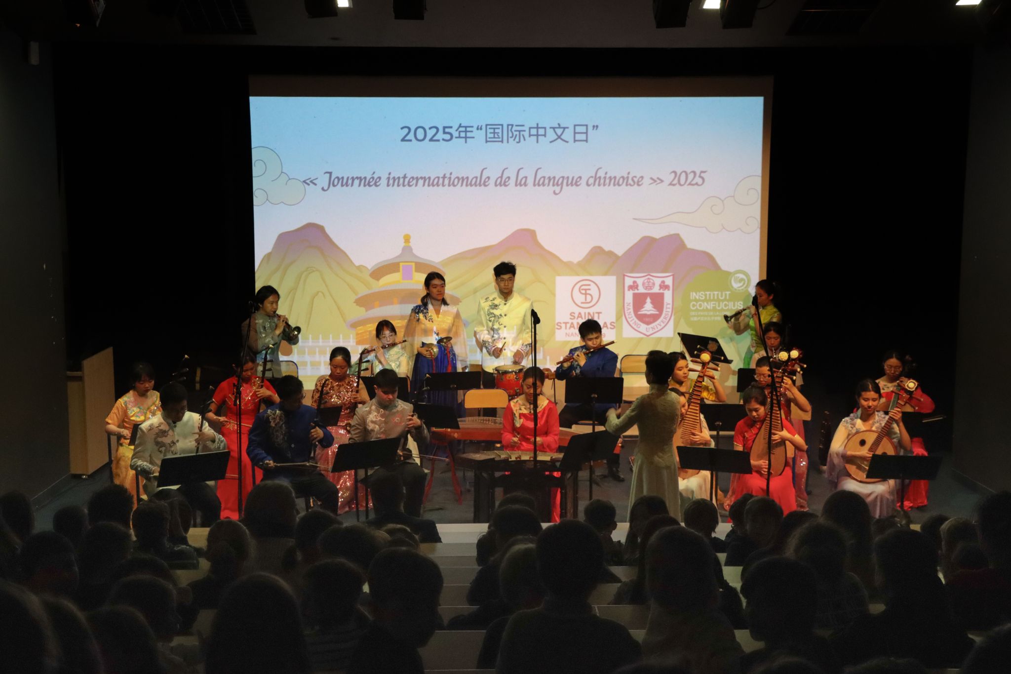 4月27日晚,巡演团返回法国,在卢浮宫朗斯分馆举行专场音乐会。本场演出是阿尔多瓦大学2025年度“中国艺术节”的压轴节目。阿尔多瓦大学与我校在共建孔子学院、开展学生交流等方面有着广泛密切的合作,高度重视乐团来访。阿尔多瓦大学历任5届校长悉数出席音乐会,与全场观众一起沉醉于中国传统民乐的魅力中。卢浮宫朗斯分馆外联与发展部主任雷金娜·布丽丝激动地表示,乐队演奏的《红楼梦》主题曲悲怆动人,让自己感动得落泪,生动诠释了“音乐无国界”的伟大文化意义。曾在凯发k8官网交换的阿尔多瓦大学学生温娜娜、玛果、魏治娜(中文名)对中国文化非常感兴趣,专程前来参加朗斯场音乐会,迷人动听的音律将她们拉回了在凯发k8官网的美好时光,她们期待继续做好中欧青年交流的文化使者。